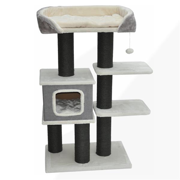 !!! DOPRAVA ZDARMA !!! NOVÉ KOČIČÍ ŠKRABADLO XL ŠEDO-BÍLÉ se sisalovými kmeny Ø 11 cm VHODNÉ PRO VELKÉ A TĚŽKÉ KOČKY ŠEDO-BÍLÉ - VYSOKÉ 90 cm OÁSA, RELAXACE A ZÁBAVA PRO KAŽDOU KOČKU Kvalitní škrabadlo není jen hračka – je to domov pro instinkt a odpočinek! Toto víceúrovňové škrabadlo v elegantní šedo-bílé barvě nabízí vše, co váš chlupatý společník potřebuje – pohodlí, zábavu i prostor pro pohyb. Měkký pelíšek a útulný domeček poskytnou místo pro lenošení. Houpačka se postará o zábavu a aktivitu. Díky stabilní základně a promyšlenému uspořádání plošin je vhodné pro větší a těžší kočky, zároveň i pro starší kočky, které preferují klidnější a pomalejší tempo. Barva: Šedo-bílá Výška: 90 cm Jednotlivé prvky: Prostorný domeček s měkkým vyjímatelným polštářkem – ideální úkryt pro nerušený odpočinek Sisalové sloupky – bytelné a masivní, vhodné i pro velká plemena Vrchní vyhlídkový pelíšek s měkkým vyjímatelným polštářkem – skvělá místa pro lenošení nebo spánek Odpočinkové plošiny – perfektní výhled na celé teritorium Závěsná houpačka – pro každodenní zábavu a aktivitu Detailní rozměry: Celkové rozměry: 90 x 49 x 40 cm (V x D x Š) Základní plocha: ca. 49 x 40 cm Sisalové kmeny: Ø 11 cm Vrchní odpočinkový pelíšek s měkkým polštářem a měkkým vyvýšeným okrajem: 52 x 42 cm Spodní domeček: ca. 38x 28 cm Spodní odpočinková plocha: Ø 34 cm Houpačka na hraní Toto škrabadlo je navrženo tak, aby vyhovovalo nárokům velkých a těžkých koček. Zároveň je navrženo tak, aby bylo pohodlné a bezpečné i pro starší kočky. Díky promyšlenému uspořádání jednotlivých plošin a dílů mohou na něm bez zbytečné námahy i méně pohyblivé kočky snadno šplhat, přelézat a odpočívat. Vhodné pro: ✅ Velká plemena (Mainská mývalí, Ragdoll, Norská lesní aj.) ✅ Aktivní kočky, které rády šplhají a pozorují okolí ✅ Starší kočky, které ocení snadný přístup a nižší rozestupy mezi plošinami.