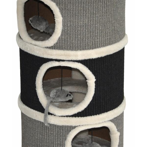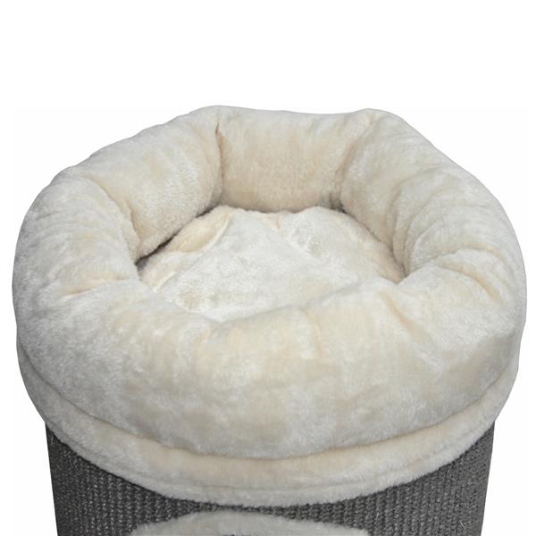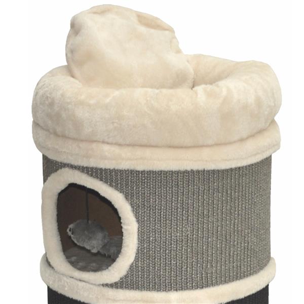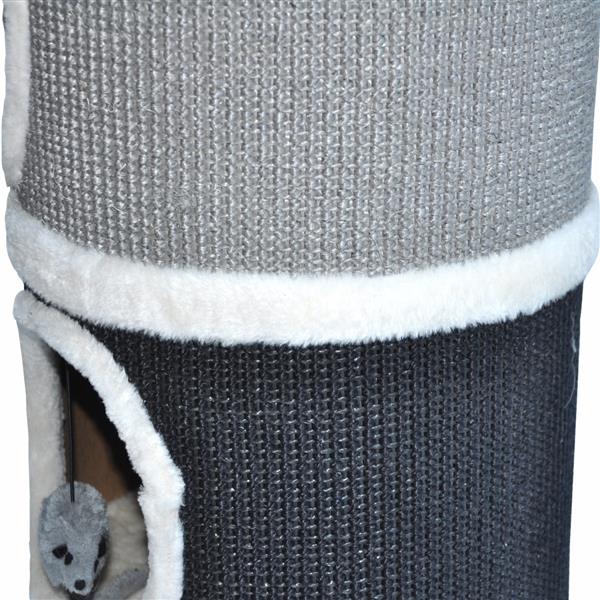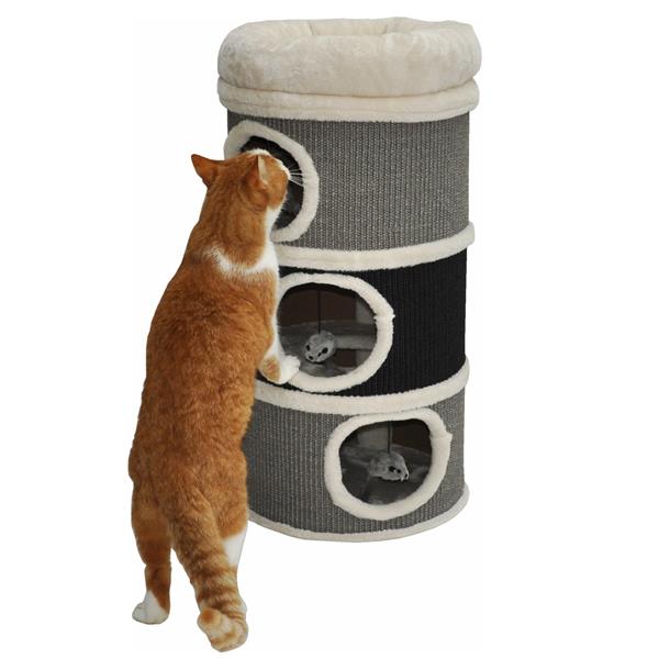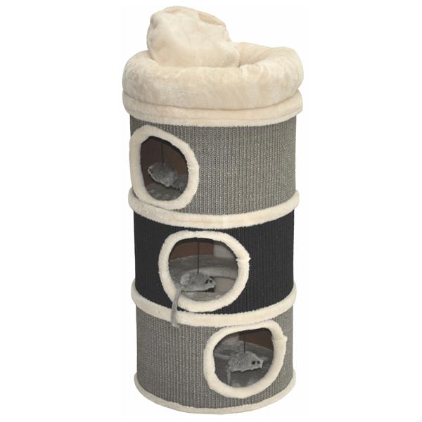 Čtvrté patro škrábacího válce je integrované do podoby pohodlného pelíšeku s plyšovým polštářkem, kde si váš kočičí kamarád může odpočinouta parádně si zalenošit. Díky různým úrovním a průlezům se vaše kočička může plně oddávat svým přirozeným škrábacím a šplhacím instinktům. Atraktivní multifunkční šedočerné provedení tohoto škrábacího válce je vhodné svými rozměry do jakéhokoli interiéru a plně nahradní konvenční škrabadla.