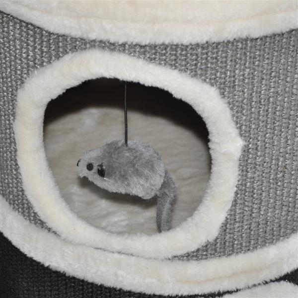 Skládá se ze tří samostatných, propojených kočičích domečků vyrobených z odolného sisalového koberce a samostatného odpočinkového pelíšku. Tyto domečky jsou ideálním útulným utočištěm pro vaši kočku. Každý domeček má uvnitř zavěšenou hračku v podobě myšky, která vaše mazlíčky nabádá ke hře.