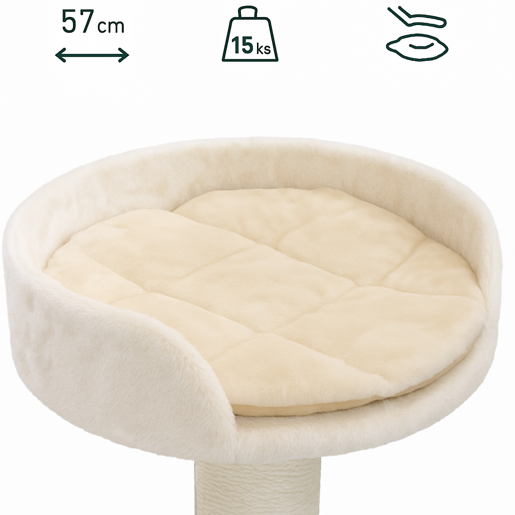 Stabilní konstrukce, pevné sisalové kmeny a měkký pelíšek zajistí pohodlí i bezpečí vašich mazlíčků.