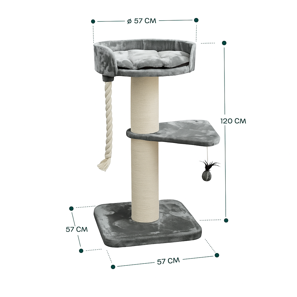 Stabilní konstrukce, pevné sisalové kmeny a měkký pelíšek zajistí pohodlí i bezpečí vašich mazlíčků.
