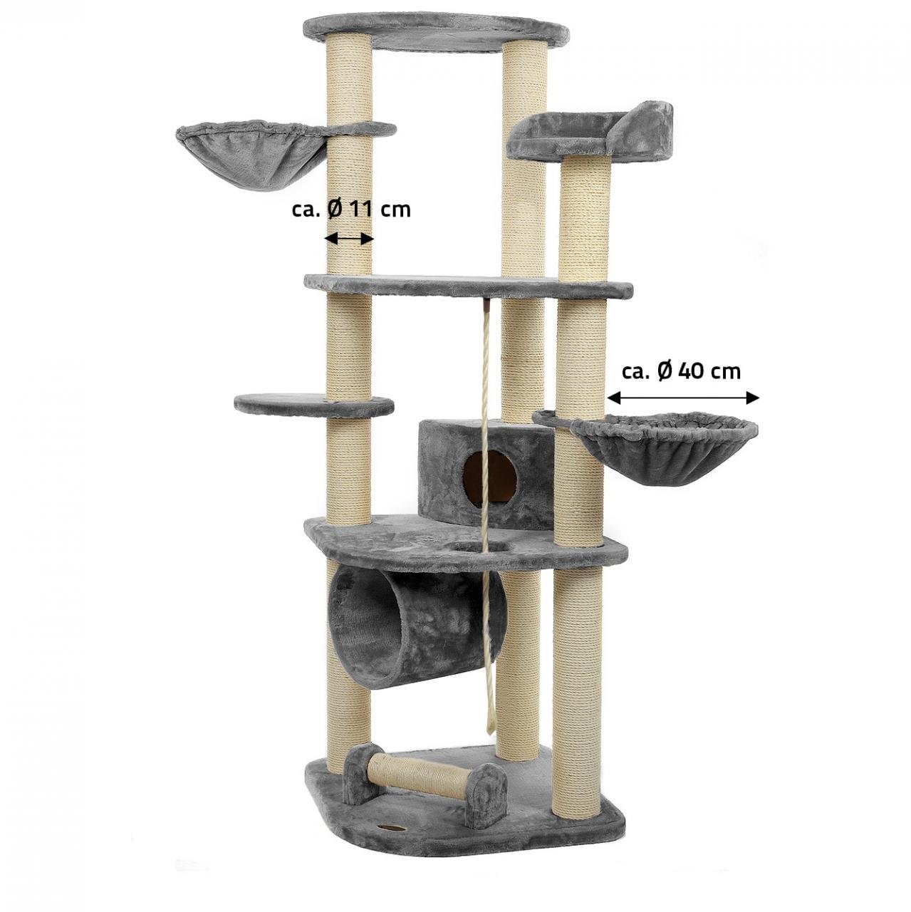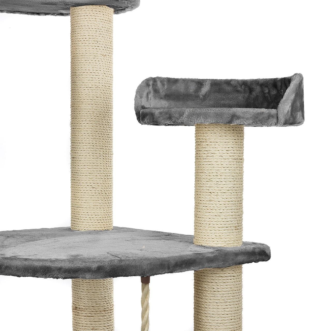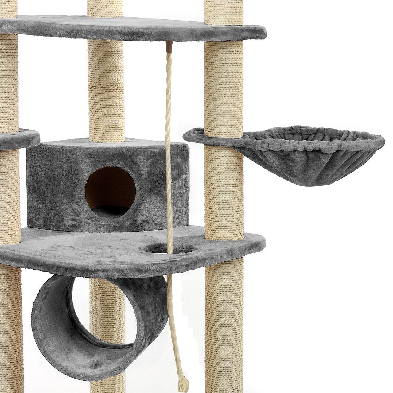 Každá kočka potřebuje místo jen pro sebe, kde bude moct nejen odpočívat, ale kde se i zaručeně zabaví! Toto víceúrovňové škrabadlo v elegantní šedé barvě nabízí vše, co váš chlupatý společník potřebuje – pohodlí, zábavu i prostor nejen pro pohyb, ale i pro lenošení. Díky stabilní základně a promyšlenému uspořádání plošin je vhodné jak pro více koček, tak pro větší nebo těžší kočky. Závěsná hračka a šplhací lano se postarají o spoustu zábavy.