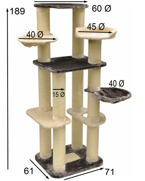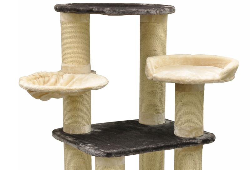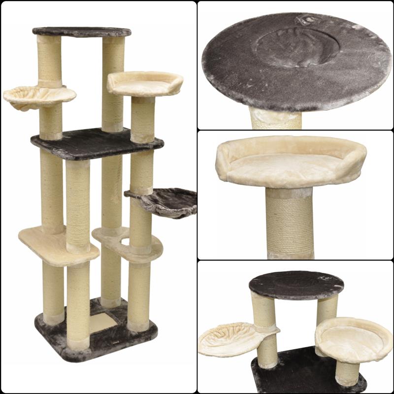 NOVÉ KOČIČÍ ŠKRABADLO XXL BÉŽOVO-ŠEDÉ se sisalovými kmeny Ø 15 cm