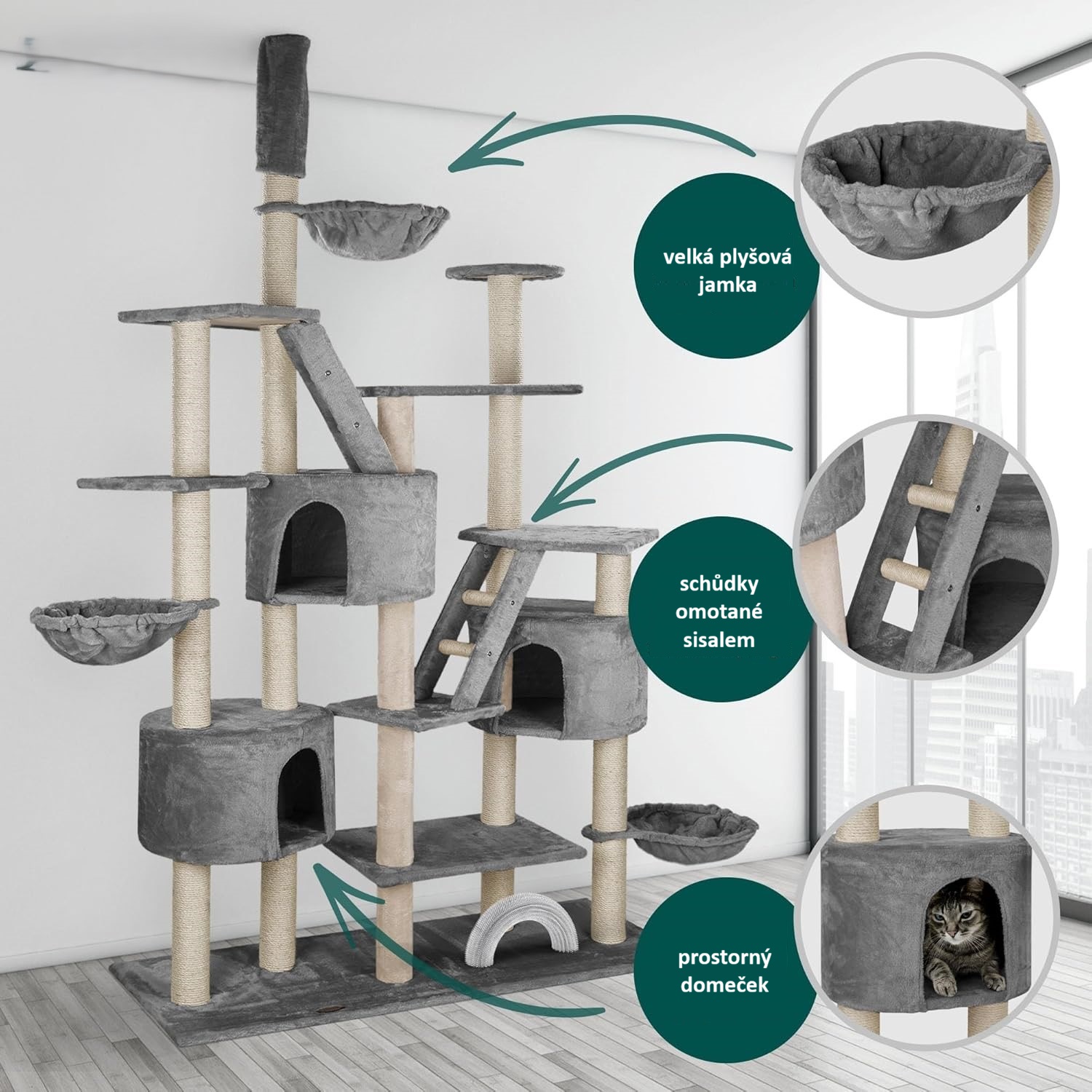 Prostorné, víceúrovňové škrabadla pro domácnosti s více kočkami – zábava, odpočinek i škrábání na jednom místě! Stabilní konstrukce, pevné sisalové kmeny a měkké pelíšky zajistí pohodlí i bezpečí vašich mazlíčků.