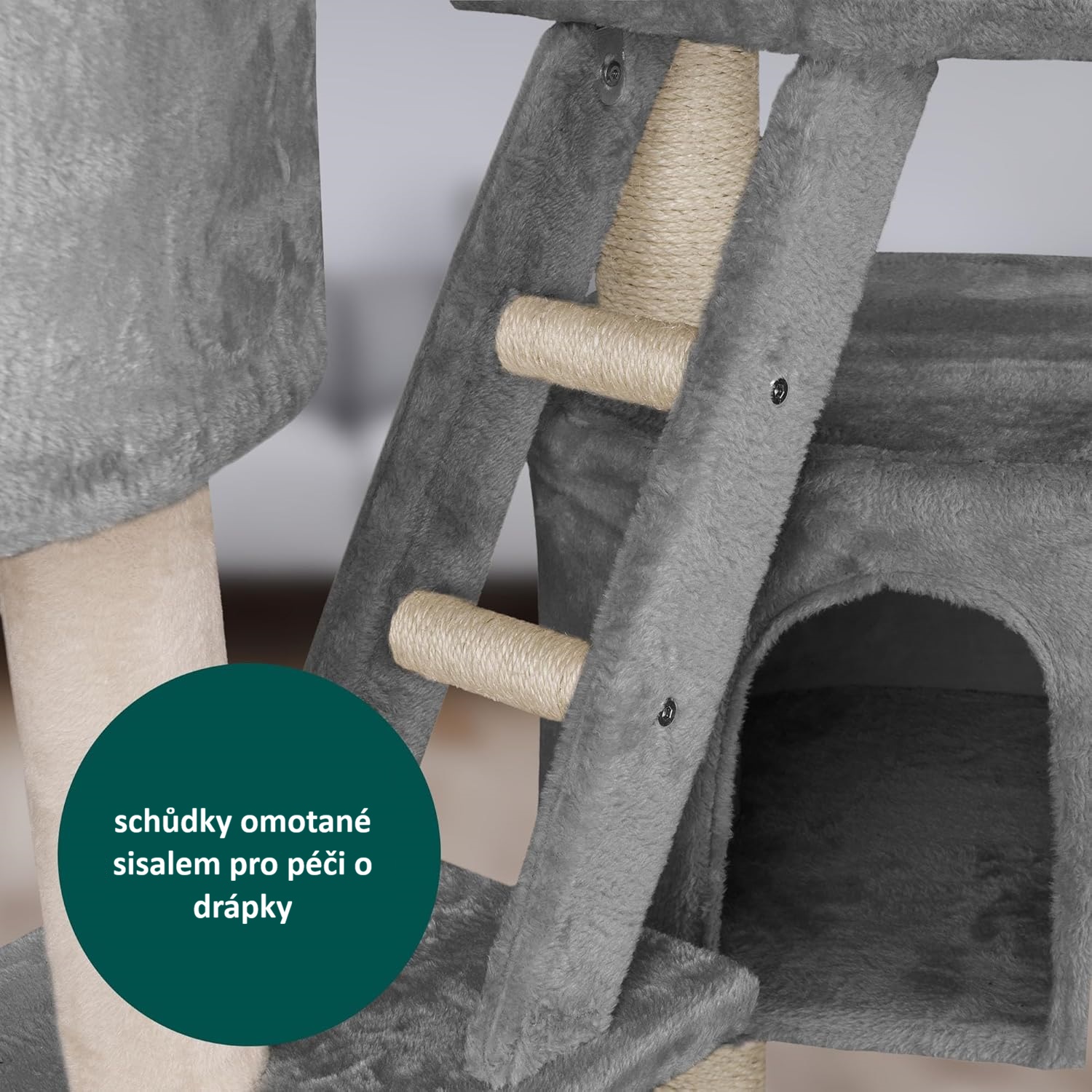 vhodné pro více koček, které si na tomto škrabadle najdou svůj individuální prostor jak na hraní, tak na soukromou chvilku v měkkoučkém domečku.
