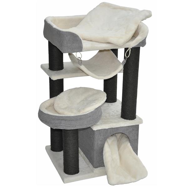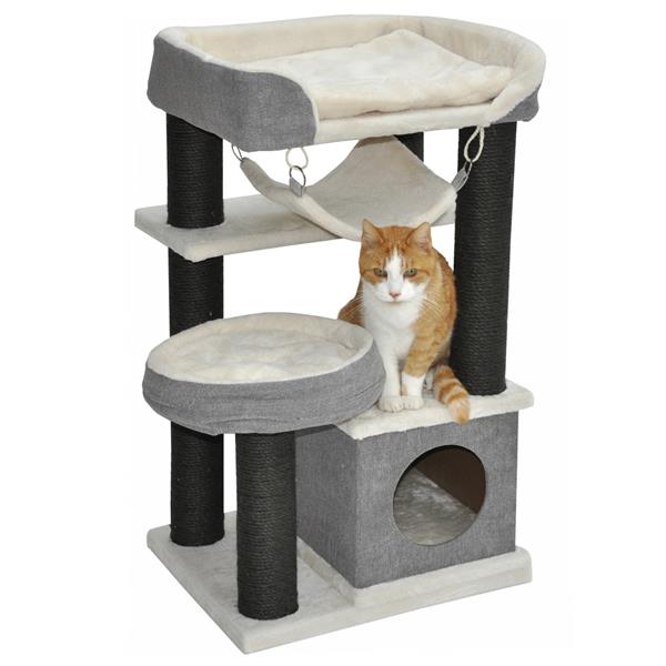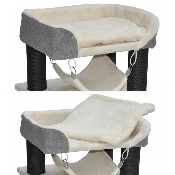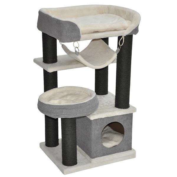 škrabadlo v elegantní šedo-bílé barvě nabízí vše, co váš chlupatý
