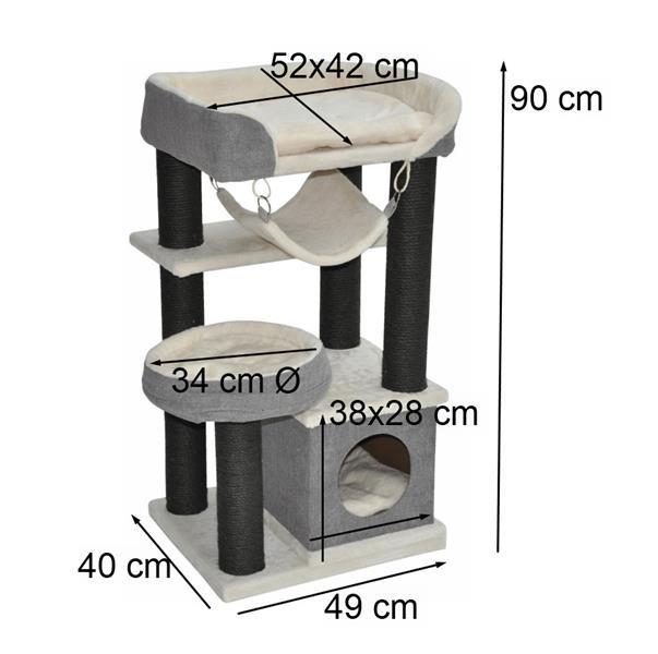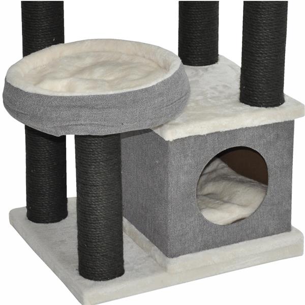 NOVÉ KOČIČÍ ŠKRABADLO XL ŠEDO-BÍLÉ se sisalovými kmeny Ø